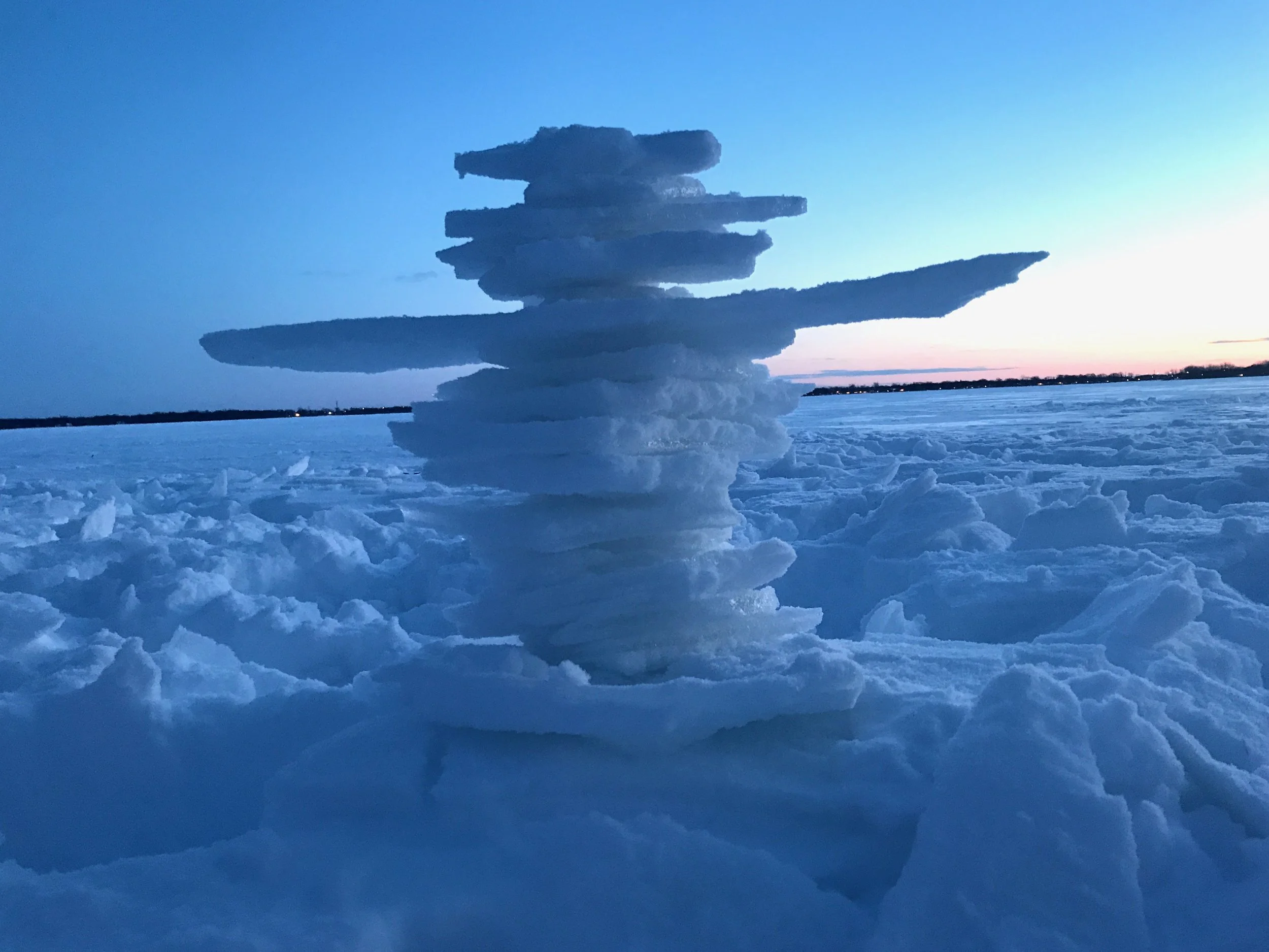This Inuksuk, built with my young kids in honor of the Arctic Indigenous tradition, says “Welcome!”