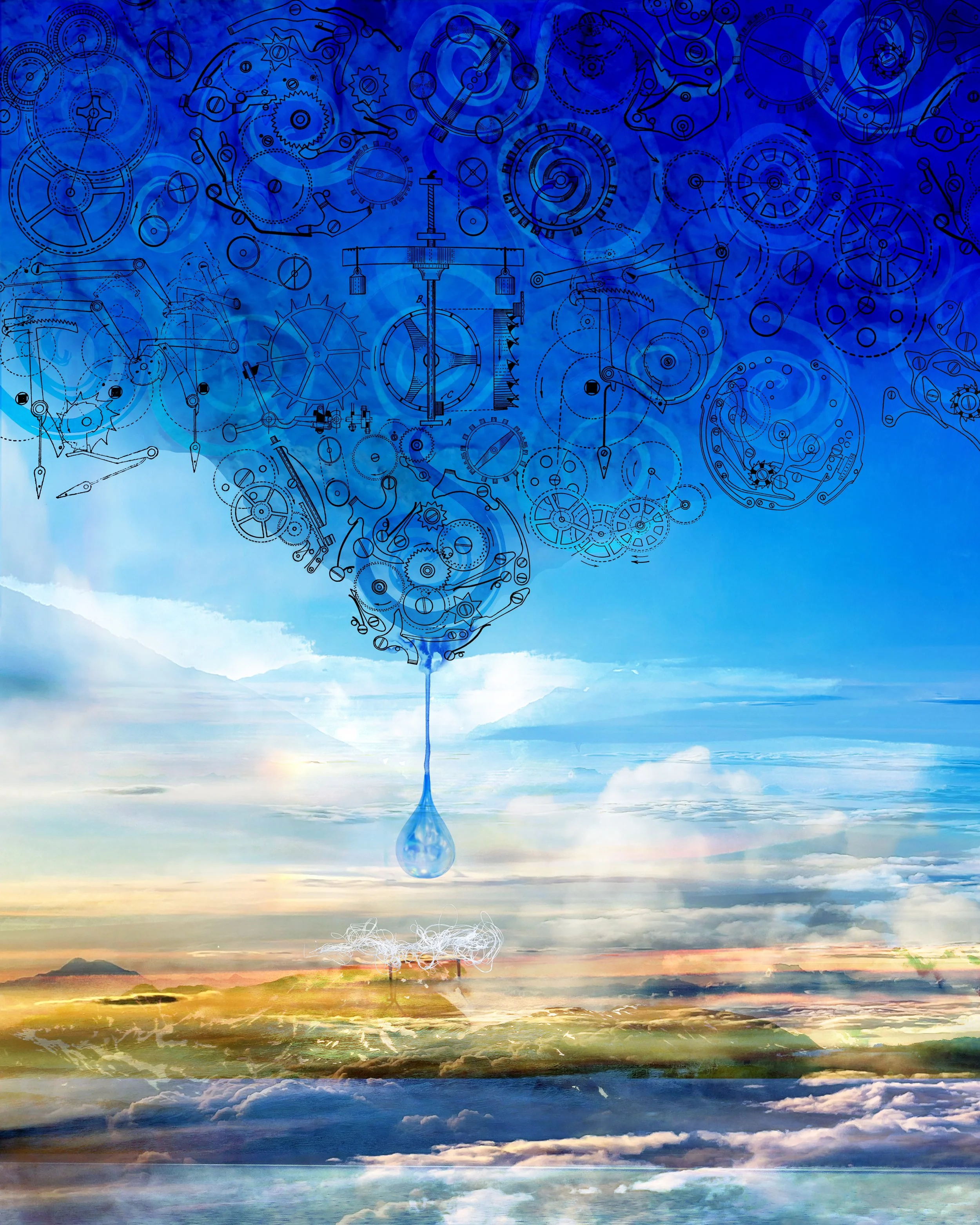 Interestingly, I will add that I created this piece, Patient, mere days before I was diagnosed with a large (benign) meningioma brain tumor. When I look back now, I can’t help but feel like that news was in that giant droplet from time’s gears above—my tangled little body a patient on a table below.